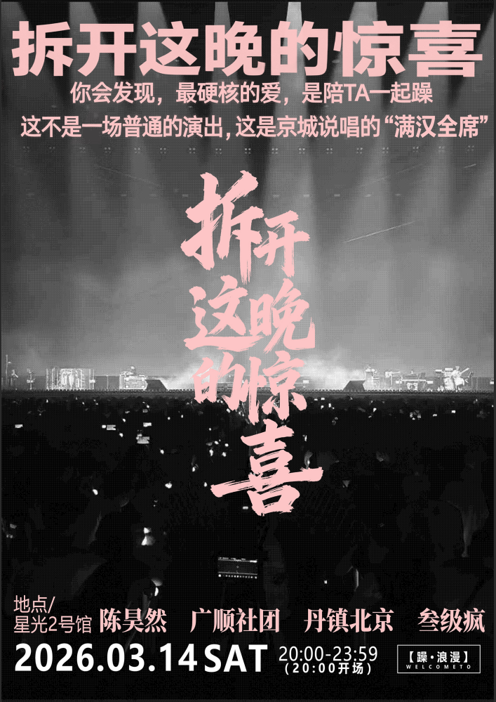 陈昊然、广顺社团、丹镇北京、叁级疯,四组风格鲜明的说唱力量集结于此,用最纯粹的现场表达,解构浪漫的多重模样。没有刻意的煽情,没有俗套的桥段,只有最真实的情绪流淌,最直击人心的韵律表达,让每一位在场者,都能在声浪中遇见最本真的心动。