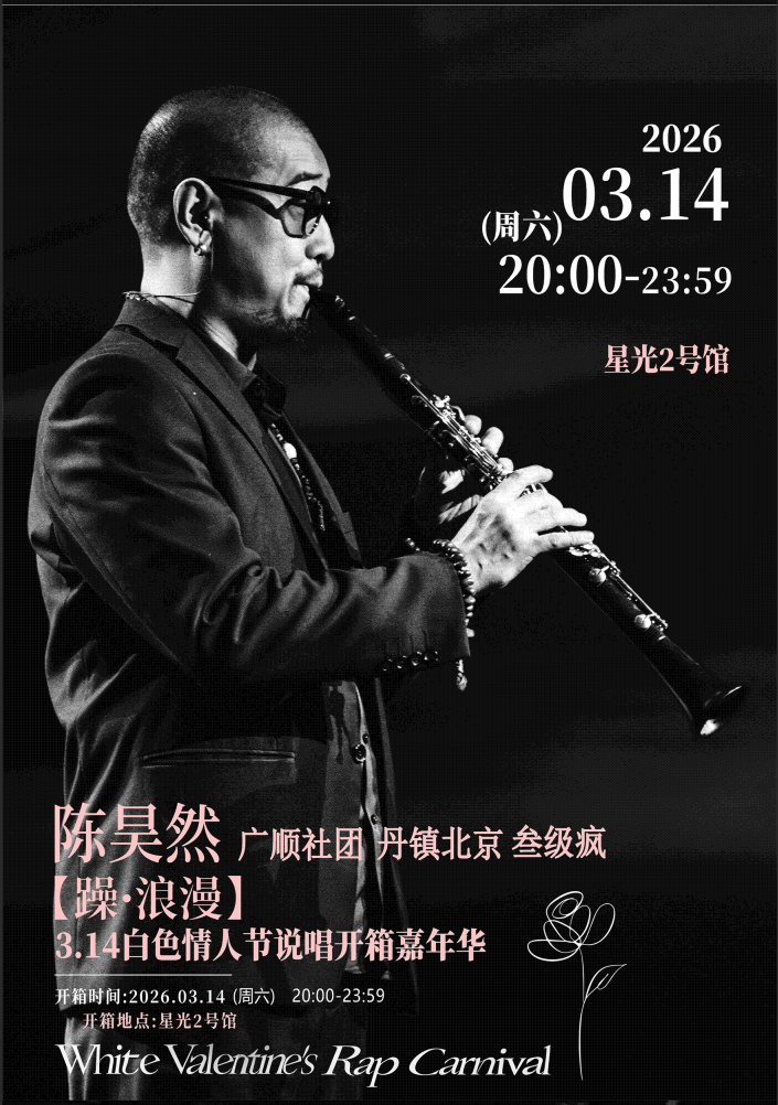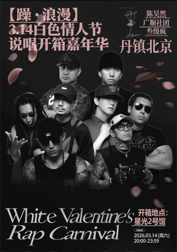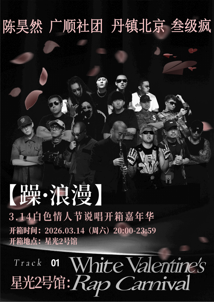 3月14日,白色情人节的浪漫叙事,将在星光2号馆被重新书写。我们摒弃千篇一律的温柔范式,以说唱为媒介,让情感在节拍里碰撞,让心意在歌词里坦诚。这不是一场喧闹的狂欢,而是一次属于灵魂的共鸣,是硬核与温柔的完美共生,是街头态度与浪漫内核的极致融合。
