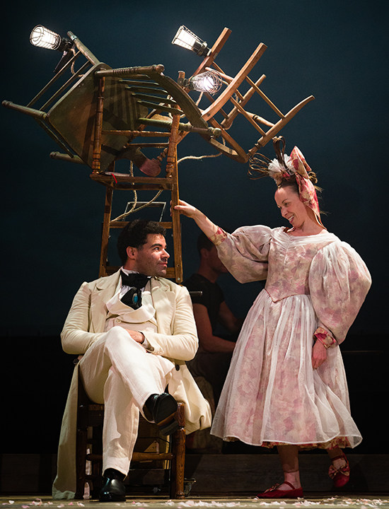 在本版改编中,艾玛·瑞斯明快而简洁地保留了主要角色和错综复杂的情节,将阴暗与疯狂的哥特底色转化为浪漫、离奇又不失细腻的情感呈现。剧中随处可见许多艾玛·瑞斯式的符号:木偶、一人分饰多角、充满想象力的声光电运用……摩尔人变成了一个古希腊歌队,音乐和舞蹈则贯穿始终,将艾米莉·勃朗特的杰作演绎得激情澎湃。