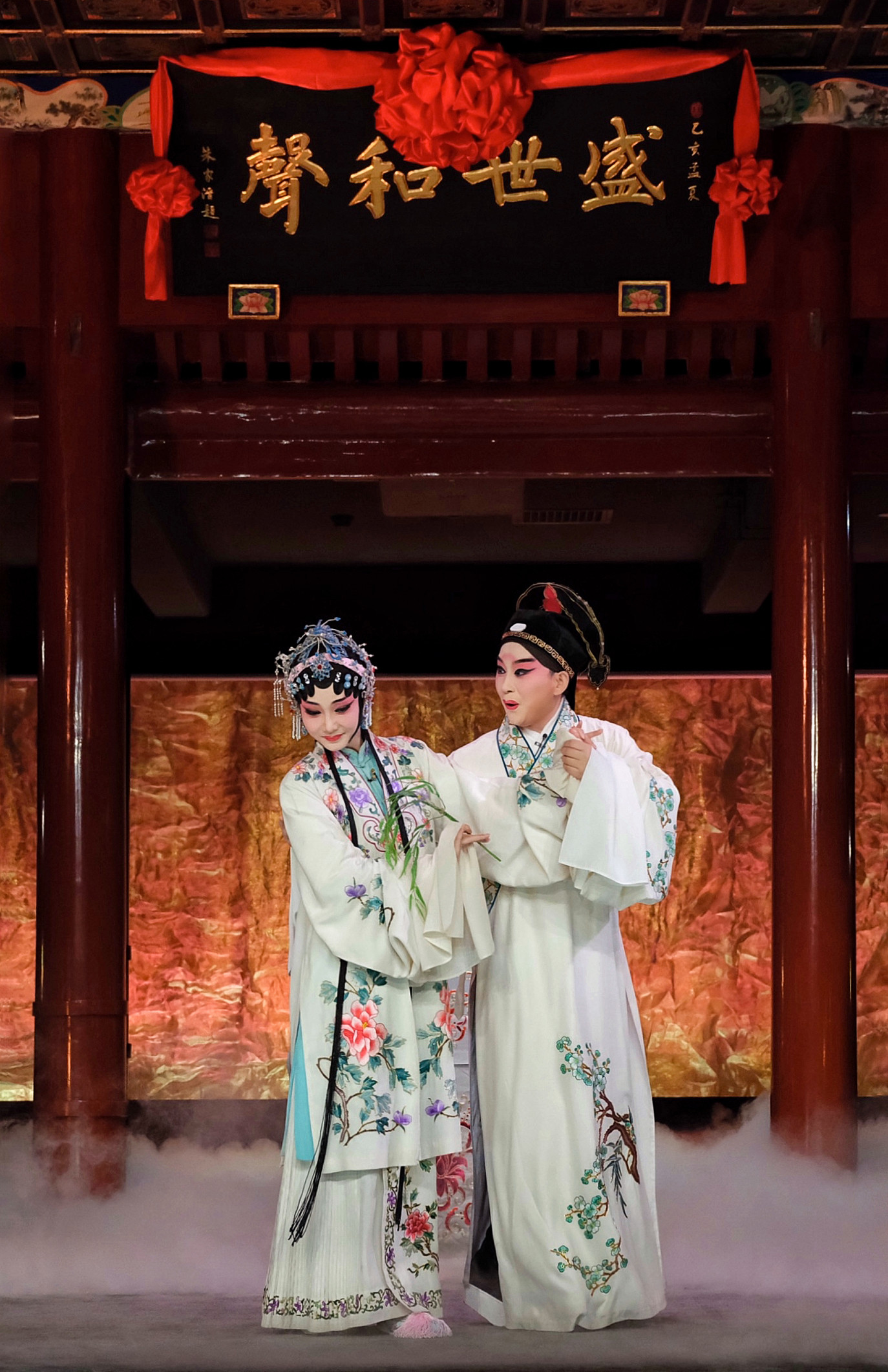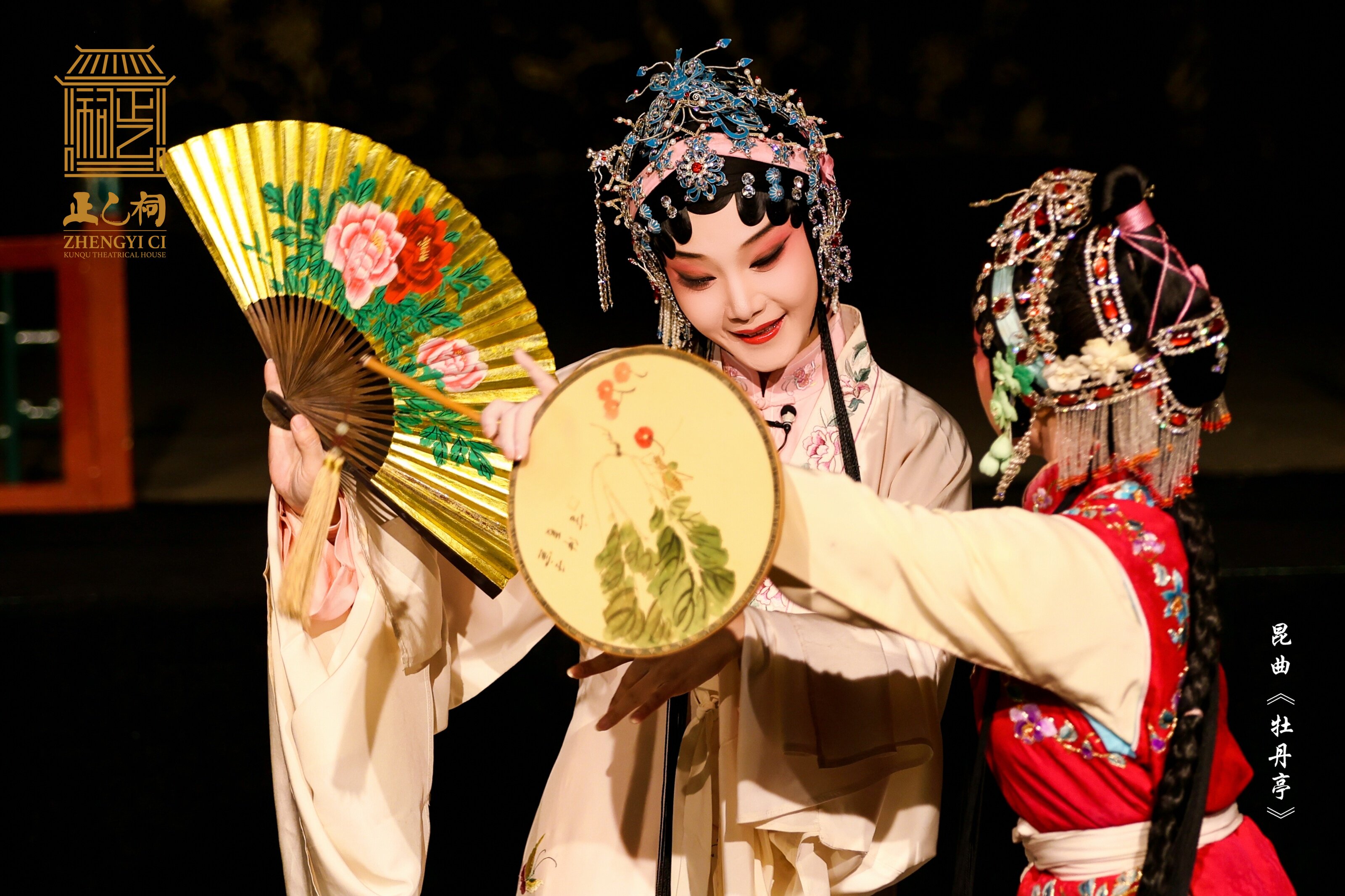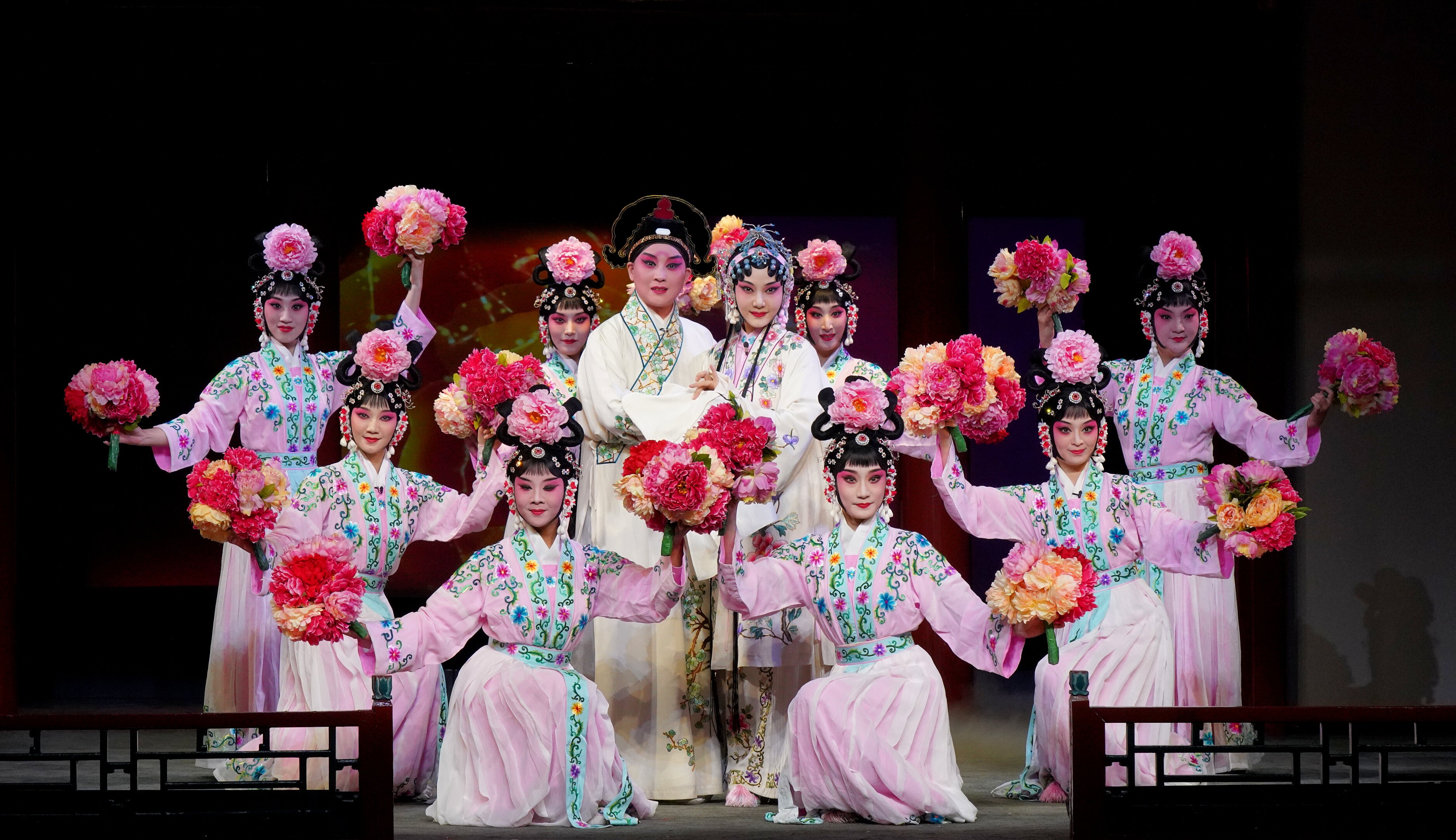 丽娘思春,悠然入梦。梦见与一秀才相会在牡丹亭前。群花翩翩起舞,赞美这对纯真挚诚的青年情投意合。